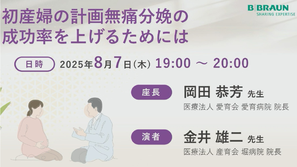 さらに1992年の開設以来、硬膜外麻酔による無痛分娩を早期から積極的に取り組まれてきた医療法人愛育会 愛育病院の岡田恭芳先生より、総合的な観点から誘発や計画無痛分娩だけなくオンデマンド無痛分娩についてもディスカッションパートにて金井先生とひも解いて頂きます。