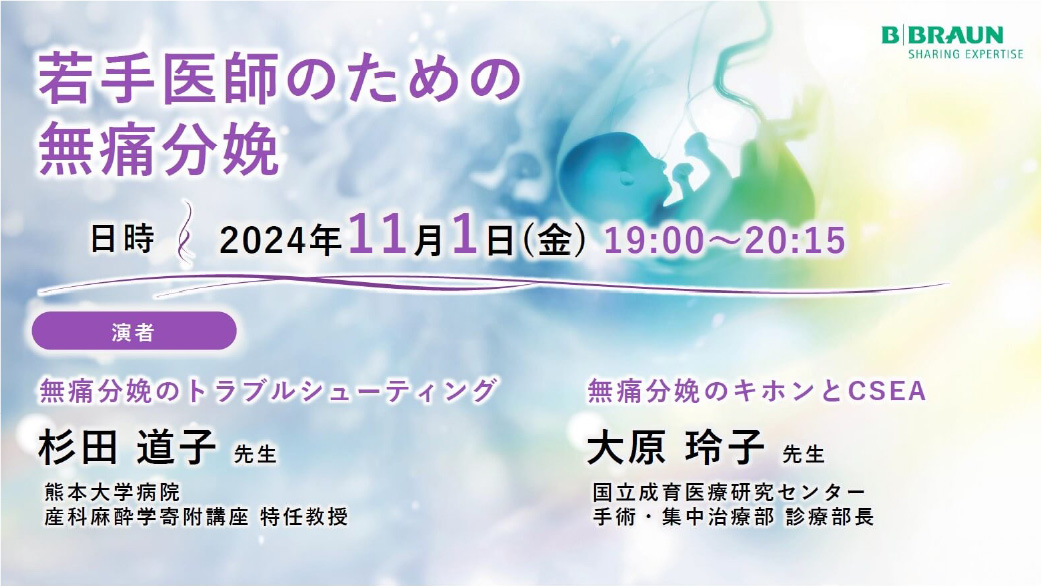 さらに、産科麻酔における人材育成と安全性向上にご尽力されている熊本大学病院の杉田道子先生より、総合的な観点から無痛分娩における陥りやすい落とし穴とその対策について徹底解説いただきます。